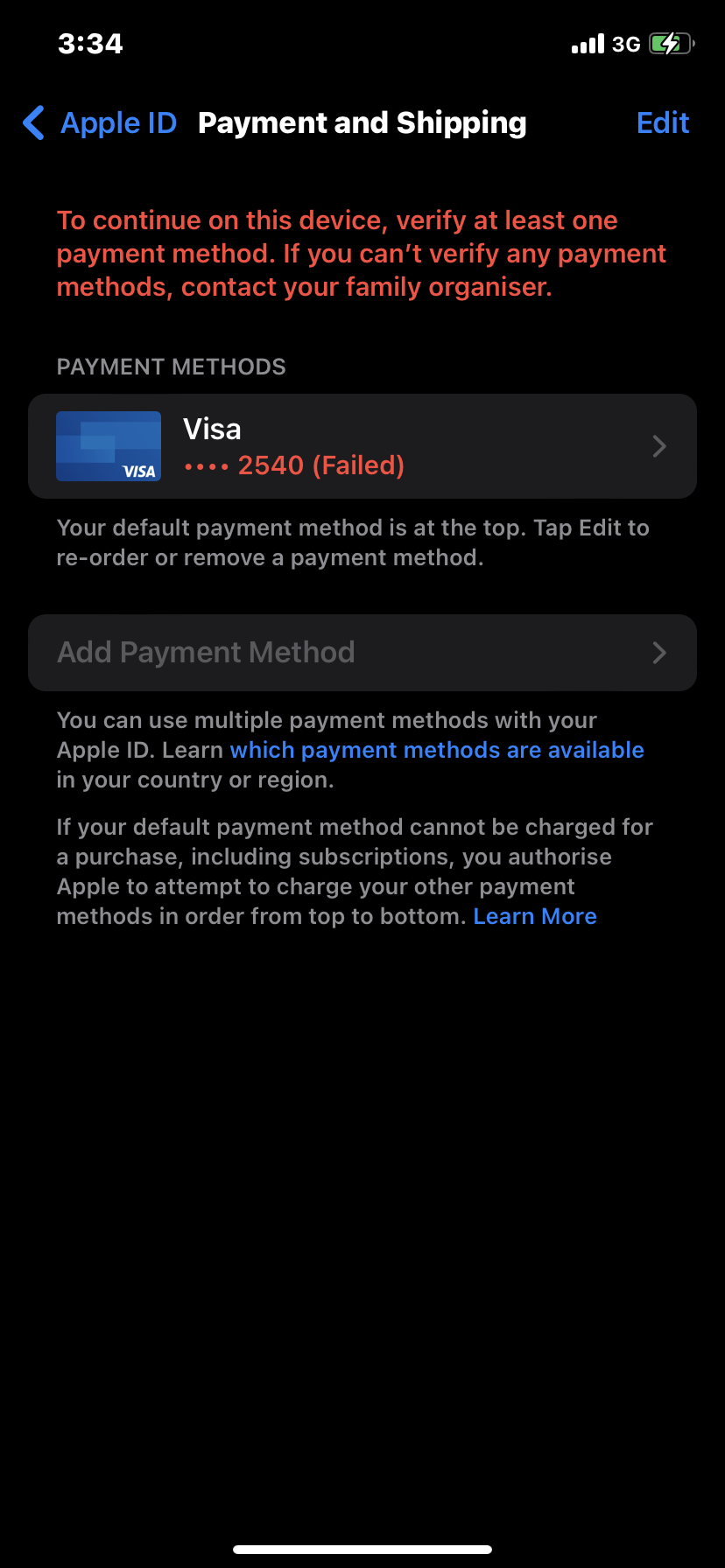 Why can’t I add a new payment method Apple Community
