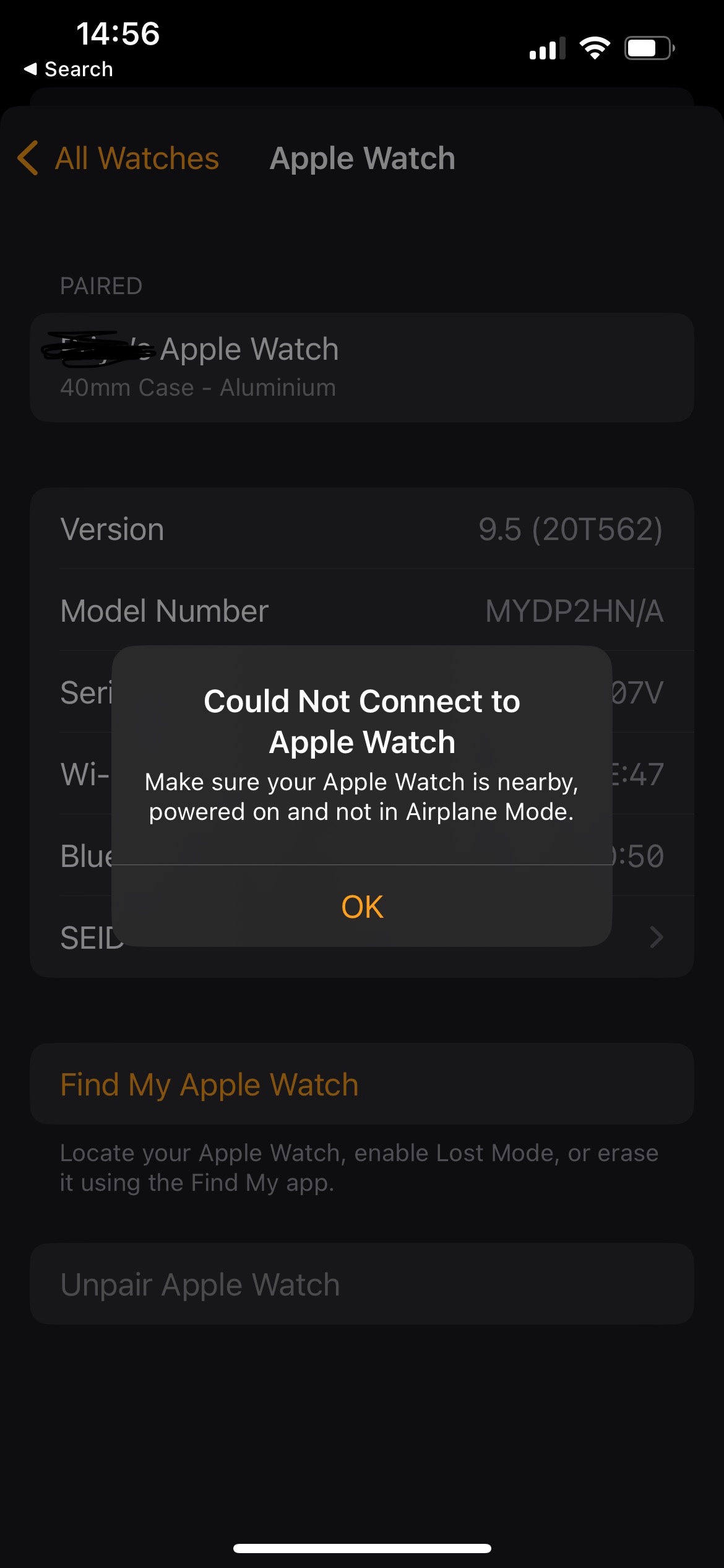 Can't Unpair Apple Watch