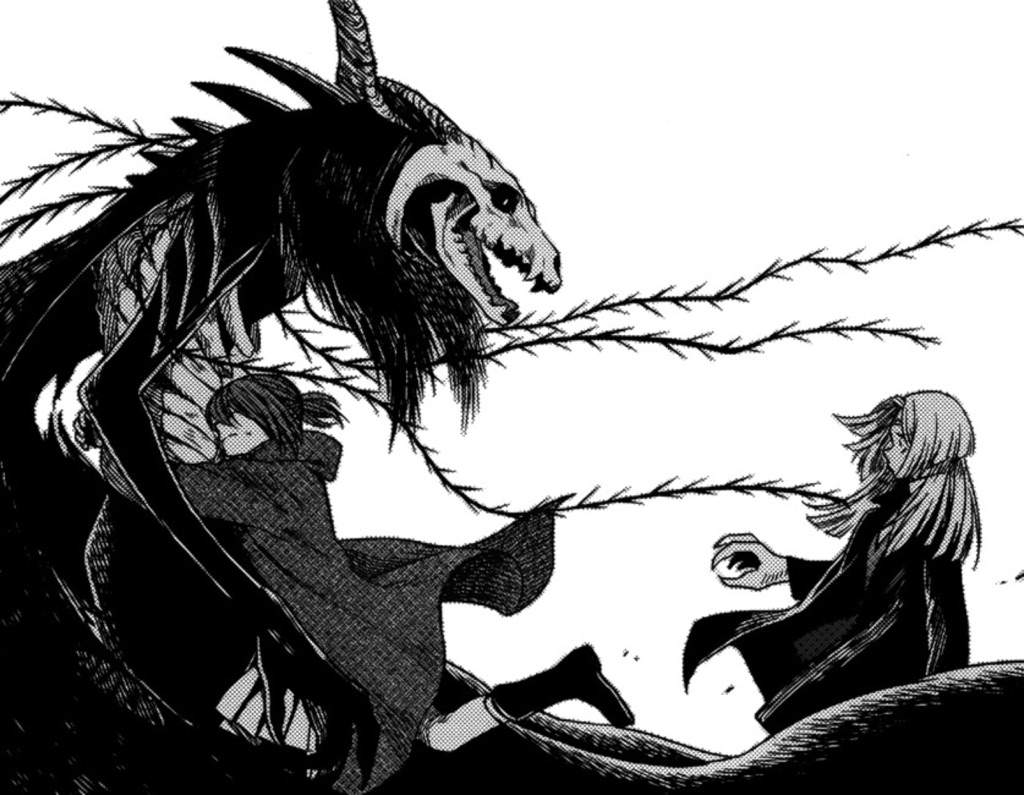 His true form is that of a tall, skeletal figure with a deer skull for a head. This appearance is quite distinct and sets him apart from humans. In his normal form, he is a bipedal humanoid mage with the skull of a wolf and the horns of a goat in place of a head, with glowing red beams of light in. Has the usually calm and composed mage, elias ainsworth, just shown his true form on the japanese fantasy anime series, the ancient.