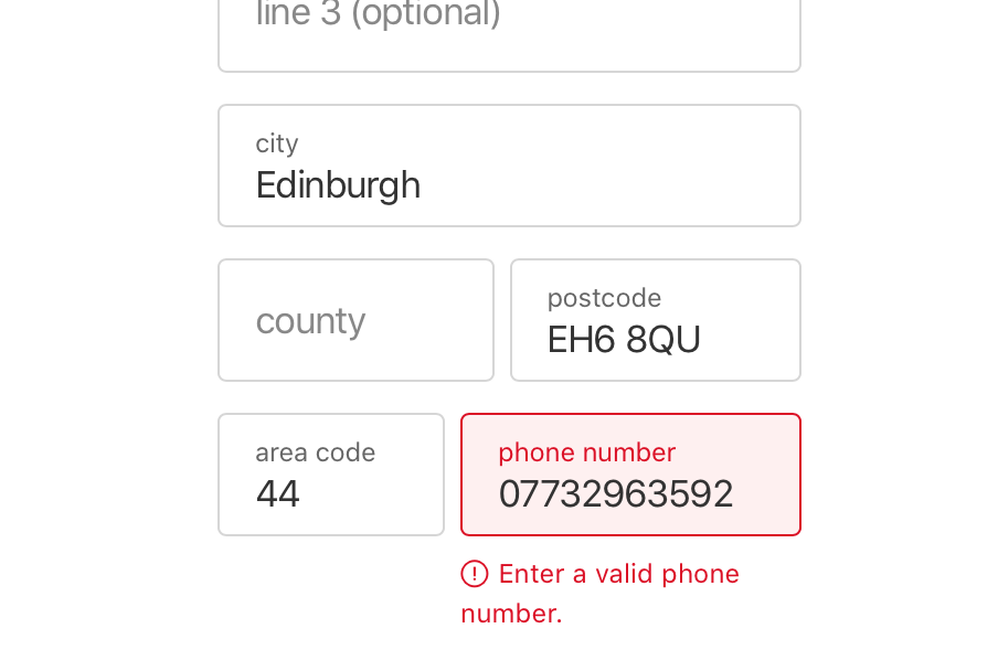 Invalid Phone Number Apple Pay - I tried to make a payment on an online store using apple pay. When i attempt to make a payment with apple pay, i get an error message stating that the phone number is invalid. I'm trying to use apple pay on a website, and the payment portal tells me that my phone number is invalid. After finger print verification, i am prompted phone number.