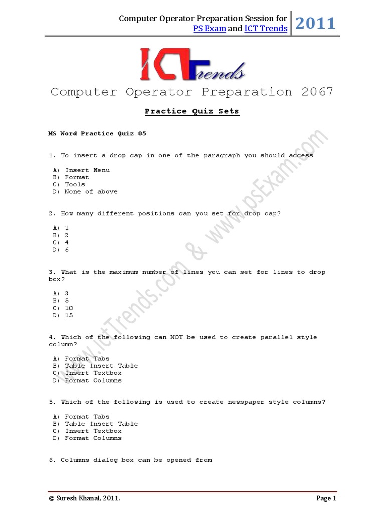 MS Word Practice Quiz 05 Microsoft Word Application Software